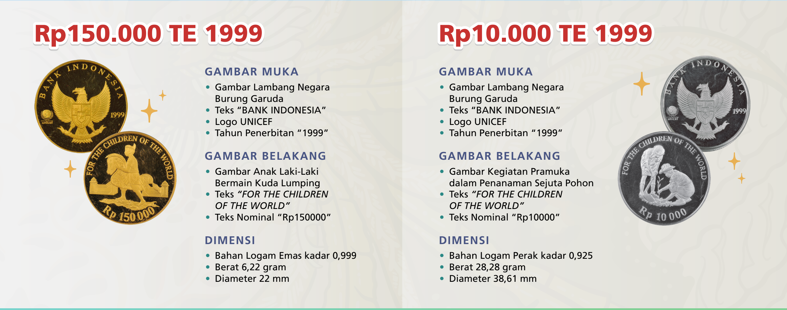 Berikut ciri-ciri Uang Rupiah Khusus Seri For The Children of The World (TE) 1999 pecahan Rp150.000 dan Rp10.000.