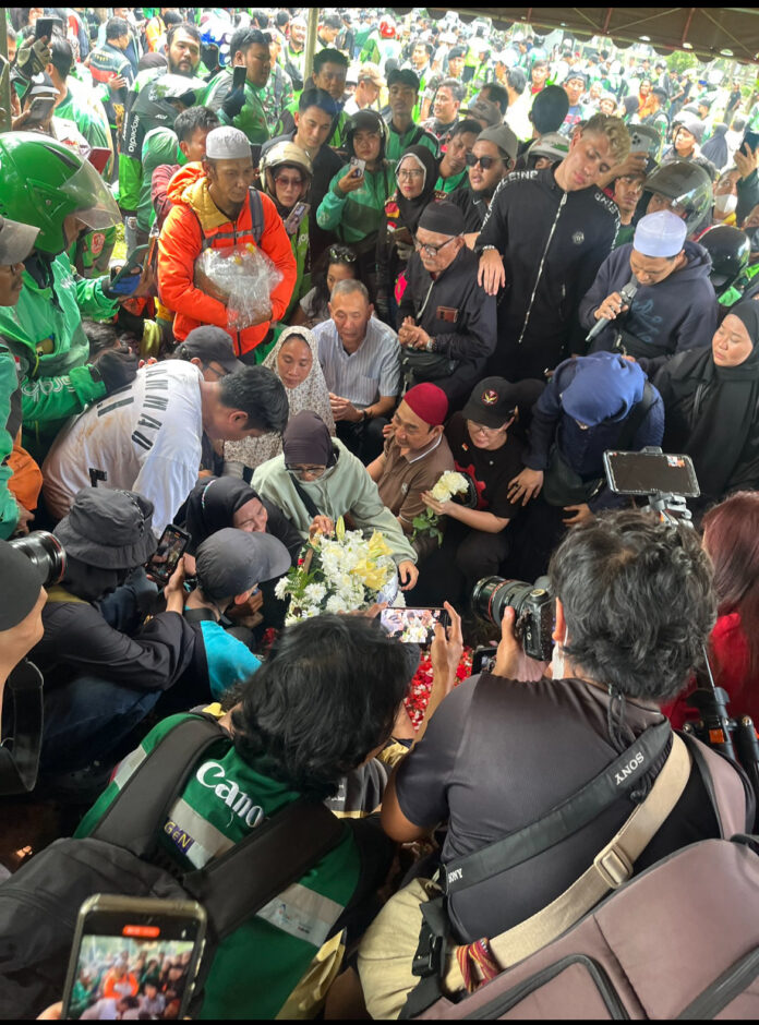 Ratusan bahkan ribuan driver ojol hadir memberikan penghormatan terakhir. Mereka berdiri bersama keluarga dan kerabat di pemakaman. Kehadiran mereka menjadi bukti kuat solidaritas antarpekerja transportasi online sekaligus menunjukkan besarnya kepedulian publik terhadap tragedi ini.