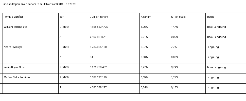 Rincian Kepemilikan Saham Pemilik Manfaat Akhir GOTO