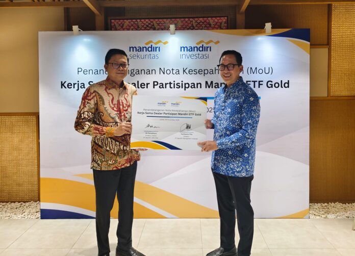 Untuk mempersiapkan peluncuran dan pemasaran produk investasi tersebut, pada Jumat (28/11/2025) ini, Mandiri Investasi melakukan penandatanganan nota kesepahaman (MoU) dengan PT Mandiri Sekuritas (Mandiri Sekuritas), yang menjadi Dealer Partisipan ETF Emas pertama di Indonesia.
