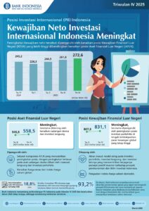 STOCKWATCH.ID (JAKARTA) – Posisi Investasi Internasional (PII) Indonesia pada triwulan IV 2025 mencatat kenaikan kewajiban neto. Angkanya menembus USD 272,6 miliar. Jumlah ini naik dari posisi triwulan III 2025 sebesar USD 261,8 miliar.