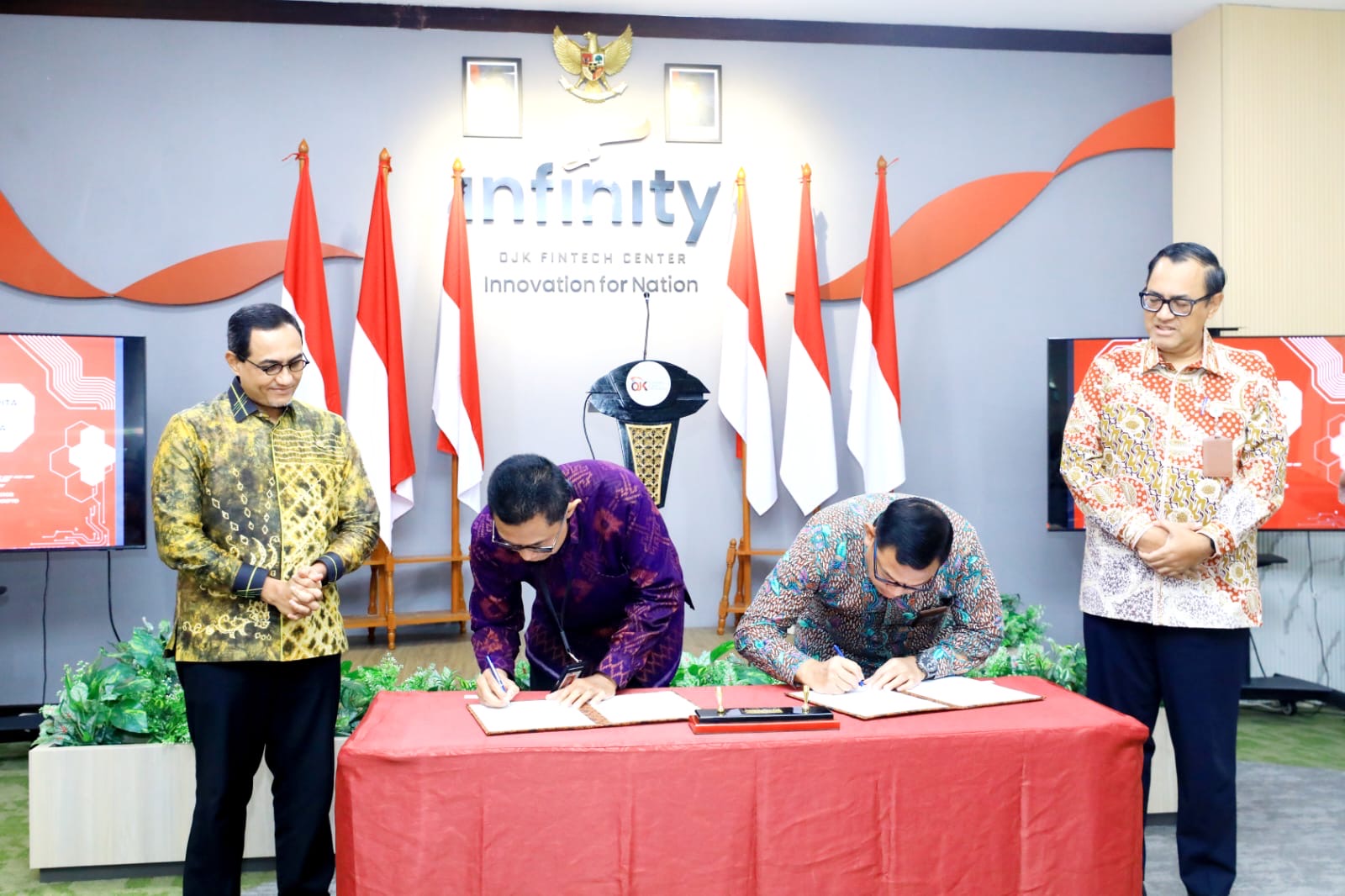 Penandatanganan tersebut disaksikan oleh Kepala Eksekutif Pengawas Inovasi Teknologi Sektor Keuangan, Aset Keuangan Digital, dan Aset Kripto OJK Hasan Fawzi serta Kepala Bappebti Tirta Karma Senjaya.