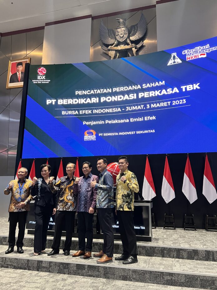 STOCKWATCH.ID (JAKARTA) – Saham PT Berdikari Pondasi Perkasa Tbk (BDKR) resmi dicatatkan dan mulai diperdagangkan di Bursa Efek Indonesia (BEI), Jumat (3/3/2023). Pada saat pembukaan perdagangan, saham BDKR sempat stagnan kemudian terus menanjak.