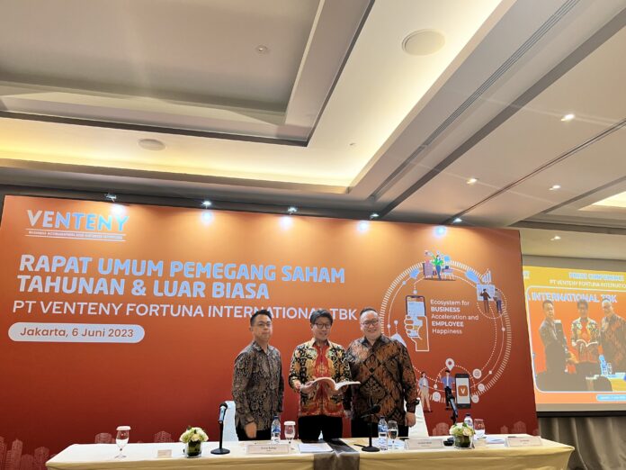 STOCKWATCH.ID (JAKARTA) – PT Venteny Fortuna International Tbk (VTNY) absen membagikan dividen tunai untuk tahun buku 2022 kendati berhasil membukukan laba bersih. Keputusan tersebut telah mendapat persetujuan dari para pemegang saham dalam Rapat Umum Pemegang Saham Tahunan (RUPST) Perseroan di Jakarta, Selasa (6/6/2023).