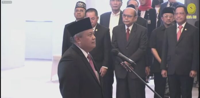 STOCKWATCH.ID (JAKARTA) – Perry Warjiyo resmi menjabat kembali sebagai Gubernur Bank Indonesia (BI) dengan masa jabatan 2023-2028. Perry mengucapkan sumpah di hadapan Ketua Mahkamah Agung, Prof. Dr. H. M. Syarifuddin., S.H., M.H. hari ini, Rabu, (24 /5/2023).